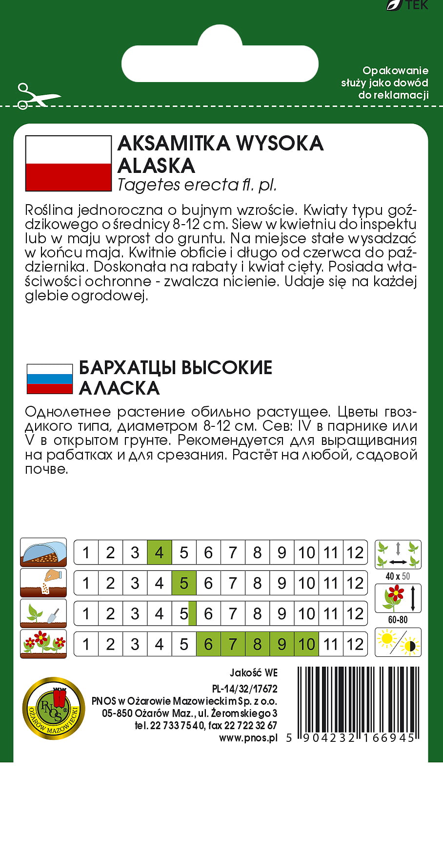 - Wysiew po osłonami: kwiecień