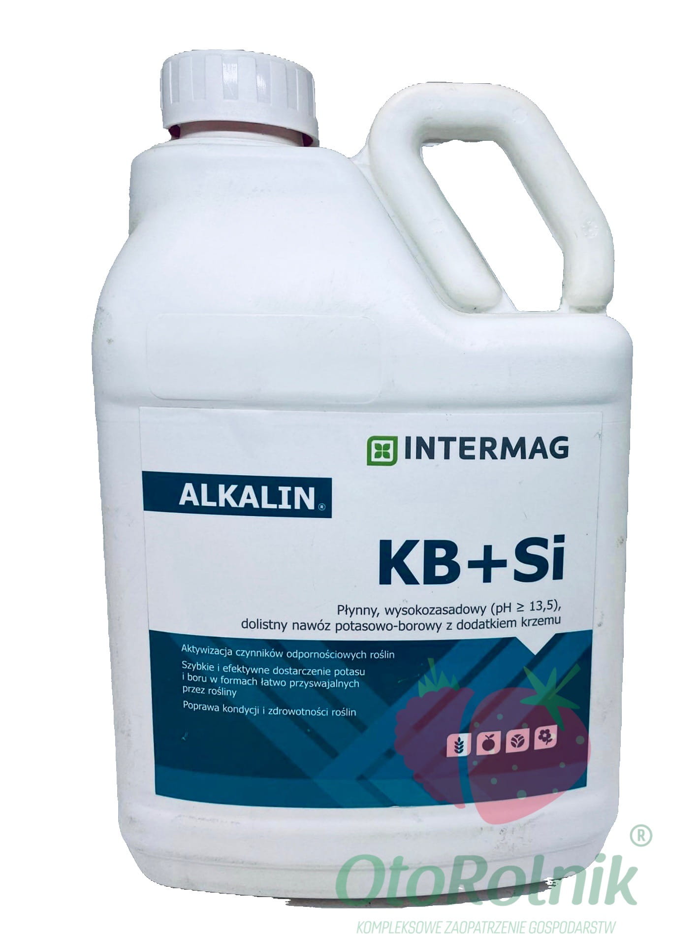 ALKALIN KB+Si to wysokozasadowy nawóz płynny, zawierający potas, bor i krzem, który wspomaga odporność roślin na stresy środowiskowe i choroby grzybowe. Dzięki alkalicznemu odczynowi (pH ≥ 13,5) aktywuje naturalne mechanizmy obronne roślin, zwiększając ich odporność na wiosenne przymrozki oraz inne niekorzystne warunki pogodowe. Krzem w składzie wzmacnia ściany komórkowe, co dodatkowo chroni rośliny przed stresem abiotycznym i biotycznym.