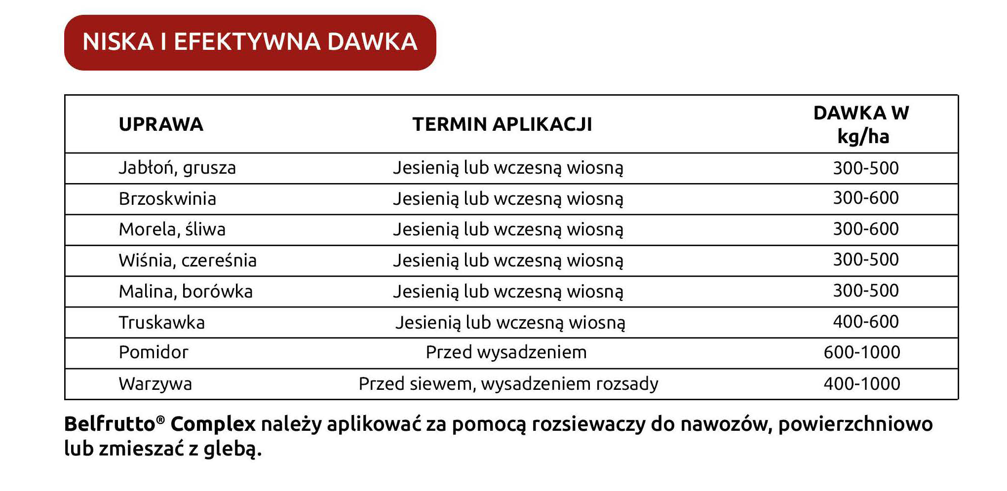 Dawka: 300–500 kg/ha - jesień lub wczesna wiosna