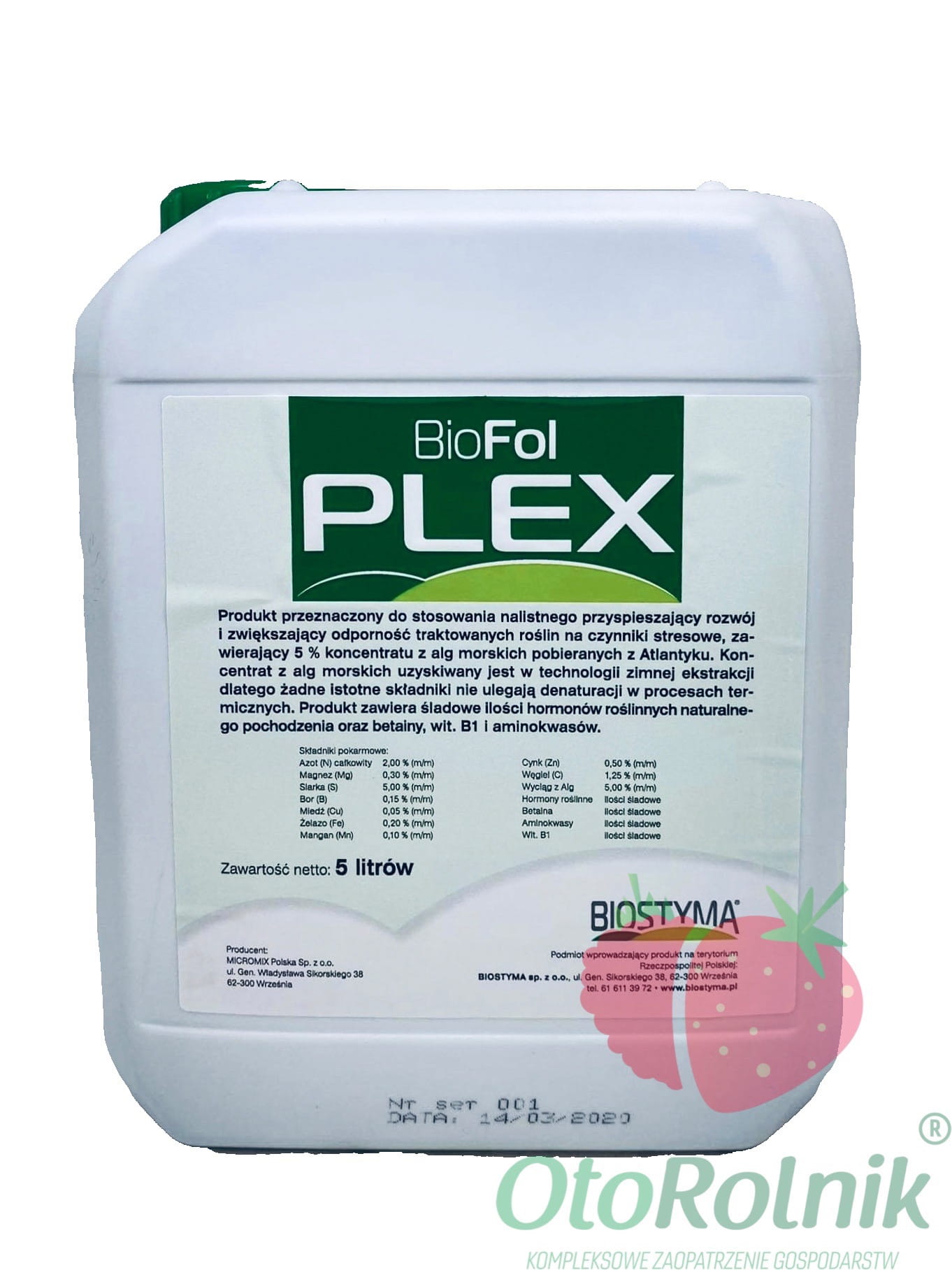 BioFol Plex to nalistny biostymulator roślinny oparty na kompleksie mikroelementów oraz 5 % wyciągu z alg morskich pozyskiwanym metodą zimnej ekstrakcji, który wspiera rozwój roślin i zwiększa ich odporność na stres środowiskowy. Produkt pomaga roślinom lepiej wykorzystać naturalny potencjał wzrostu i poprawia efektywność metaboliczną, sprzyjając uzyskaniu wyższej jakości i ilości plonu.
