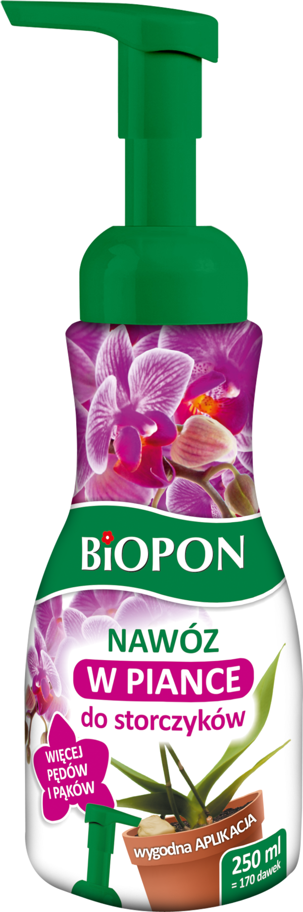Innowacyjny, gotowy do użycia nawóz w piance do wszystkich gatunków storczyków. Dostarcza roślinom niezbędne składniki odżywcze, pobudza do wypuszczania nowych pędów i pąków, wzmacnia korzenie i liście, zapewnia obfite kwitnienie. Wyjątkowo wydajny i wygodny w użyciu – aplikuje się go bezpośrednio do doniczki, bez konieczności odmierzania odpowiedniej dawki.