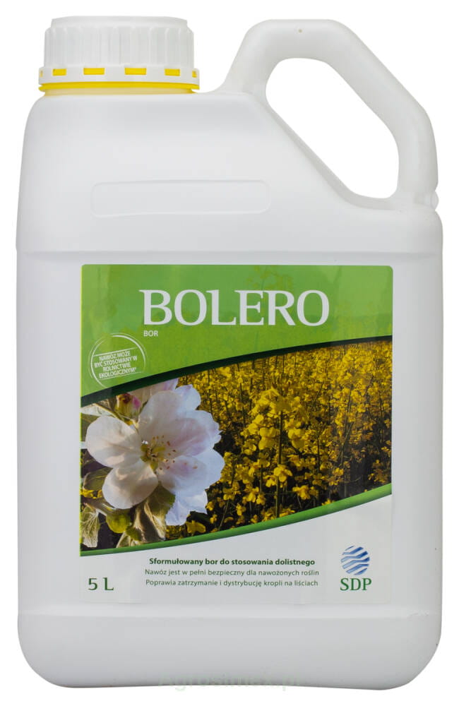 Bolero to płynny nawóz dolistny o wysokiej zawartości boru, przeznaczony do stosowania w uprawach warzywnych, sadowniczych oraz rolniczych. Dzięki borowi w formie dziesięciowodnego pentaboranu sodu działa szybko i skutecznie, uzupełniając niedobory tego kluczowego mikroelementu.