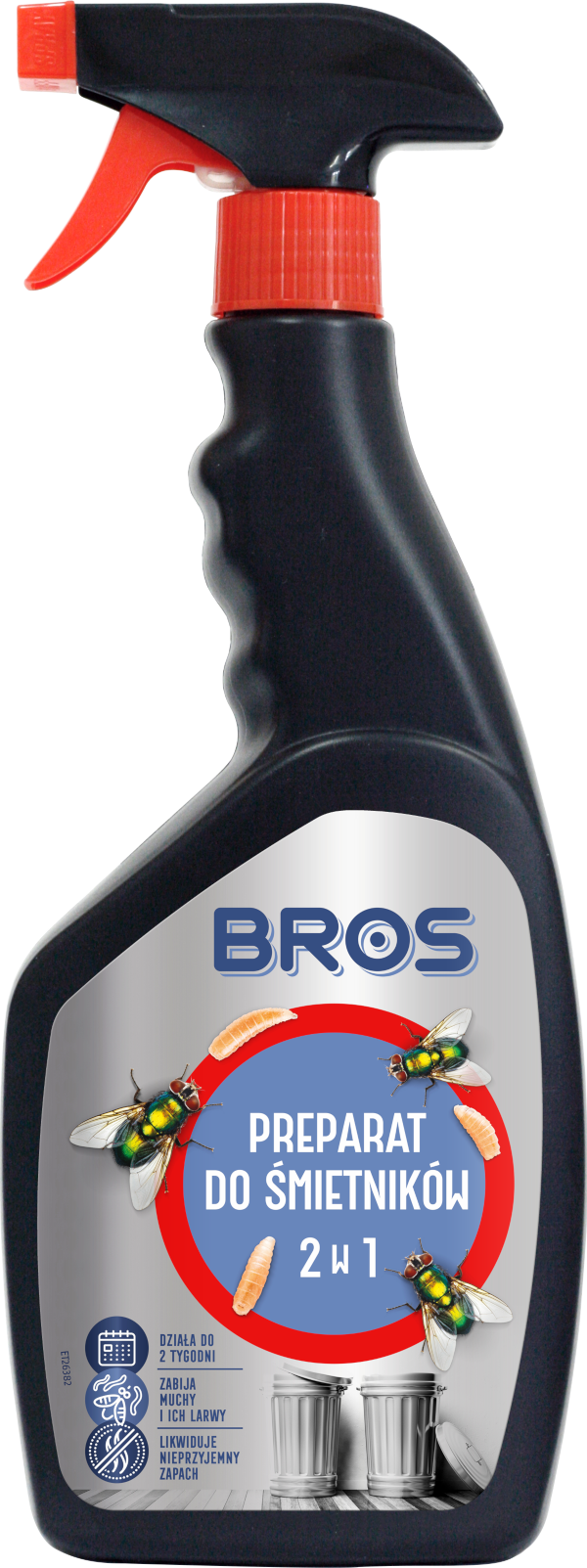 Gotowy do użycia płyn do spryskiwania worków i pojemników na śmieci (w domu i na zewnątrz). Szerokie spektrum działania: zwalcza muchy oraz ich larwy, a także neutralizuje nieprzyjemne zapachy, pozostawiając w otoczeniu cytrynową świeżość. Preparat zachowuje skuteczność aż do 2 tygodni.