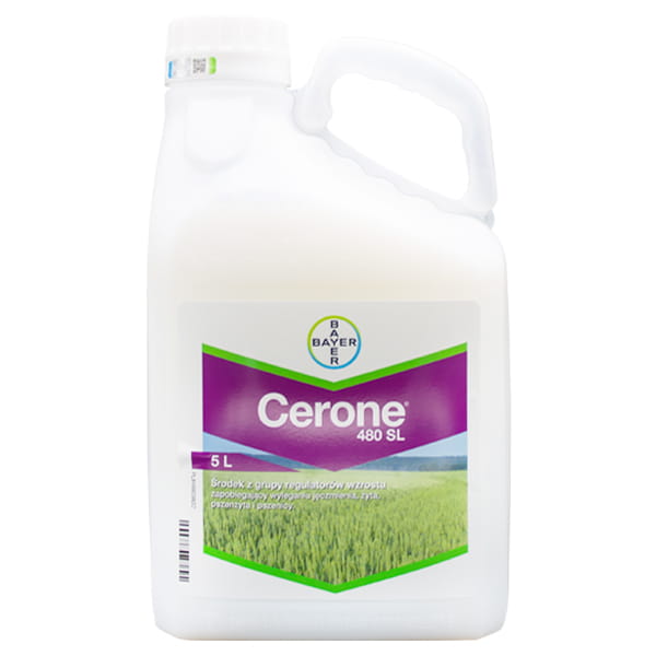 Cerone 480 SL to środek z grupy regulatorów wzrostu, który zapobiega wyleganiu zbóż takich jak: żyto, jęczmień, pszenżyto i pszenica. Szczególnie zalecany do upraw prowadzonych na żyznych stanowiskach lub intensywnie nawożonych azotem.
