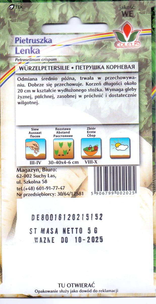 Coleus Pietruszka korzeniowa Lenka