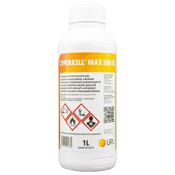 Cyperkill Max 500 EC to profesjonalny insektycyd w formie koncentratu do sporządzania emulsji wodnej, przeznaczony do zwalczania owadów – zarówno ssących, jak i gryzących – w uprawach roślin rolniczych, warzywnych oraz ozdobnych. Działa zarówno kontaktowo (po zetknięciu owada ze środkiem) jak i żołądkowo (po spożyciu przez owada substancji czynnej). Na roślinie działa powierzchniowo.