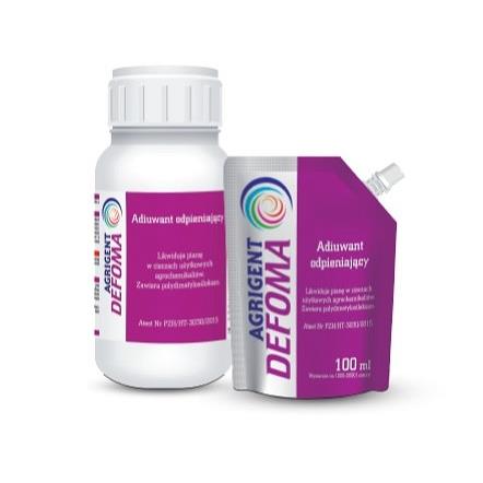 DEFOMA to specjalistyczny adiuwant przeznaczony do eliminacji piany powstającej podczas przygotowywania cieczy roboczej z udziałem nawozów dolistnych, herbicydów, insektycydów, fungicydów oraz regulatorów wzrostu. Środek jest gotowy do użycia, działa natychmiastowo i skutecznie, nawet przy bardzo niskich dawkach. Dzięki niskiej lepkości doskonale rozprasza się w cieczy, co ułatwia jego stosowanie i przyczynia się do sprawnego przebiegu prac polowych.
