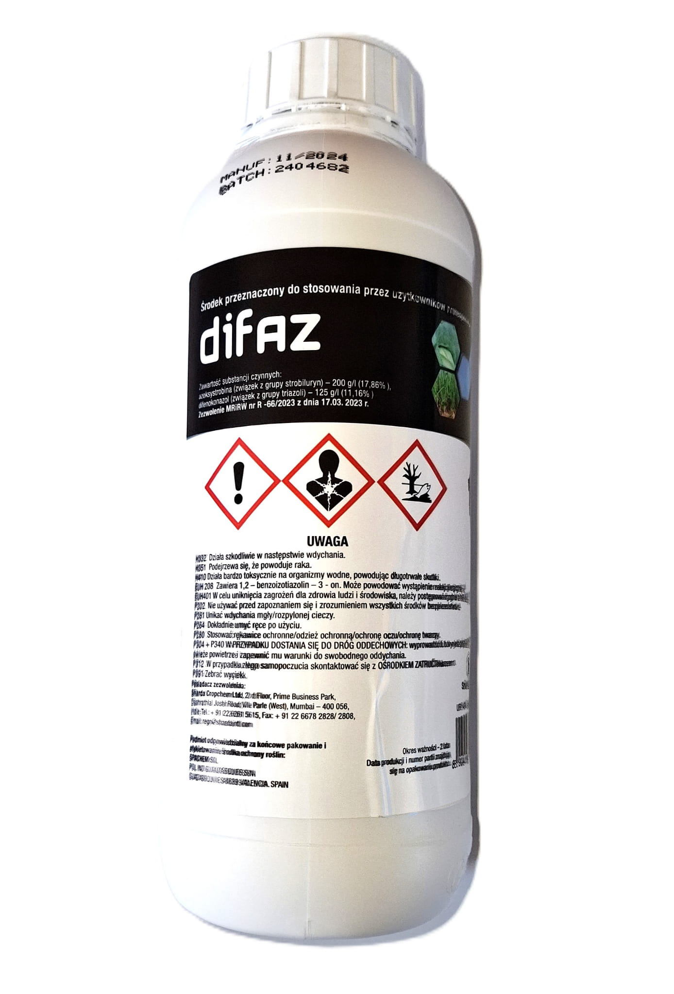 Difaz to środek grzybobójczy (fungicyd) w formie stężonej zawiesiny do rozcieńczania wodą (SC). Przeznaczony jest do ochrony roślin warzywnych przed najgroźniejszymi chorobami grzybowymi, takimi jak mączniak prawdziwy roślin kapustnych oraz rdza pora. Zawiera dwie substancje aktywne: azoksystrobinę i difenokonazol, które działają wgłębnie i układowo. Preparat może być stosowany zarówno zapobiegawczo, jak i interwencyjnie.