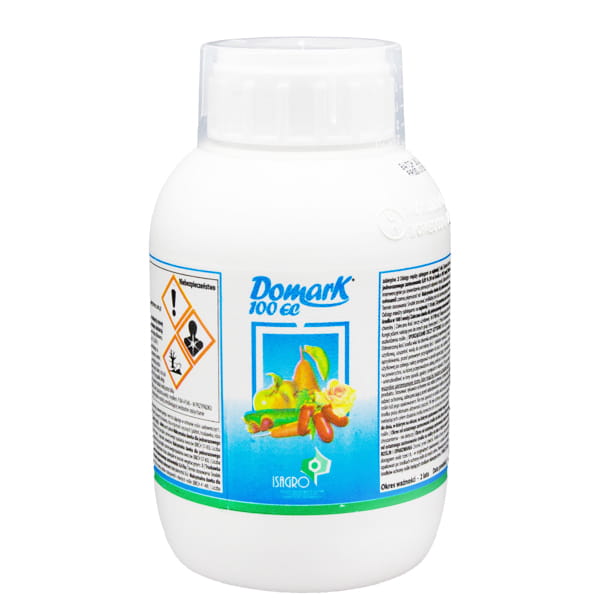 Domark 100 EC to środek grzybobójczy w formie koncentratu do sporządzania emulsji wodnej (EC). Działa układowo, co oznacza, że po wchłonięciu przez roślinę rozprzestrzenia się wewnątrz jej tkanek, chroniąc także części nieosiągalne dla oprysku. Preparat stosuje się zapobiegawczo, interwencyjnie i wyniszczająco. Zabezpiecza m.in. przed parchem jabłoni, mączniakiem prawdziwym, a także szeregiem plamistości liści w uprawach jabłoni, truskawki, róży i chryzantemy.