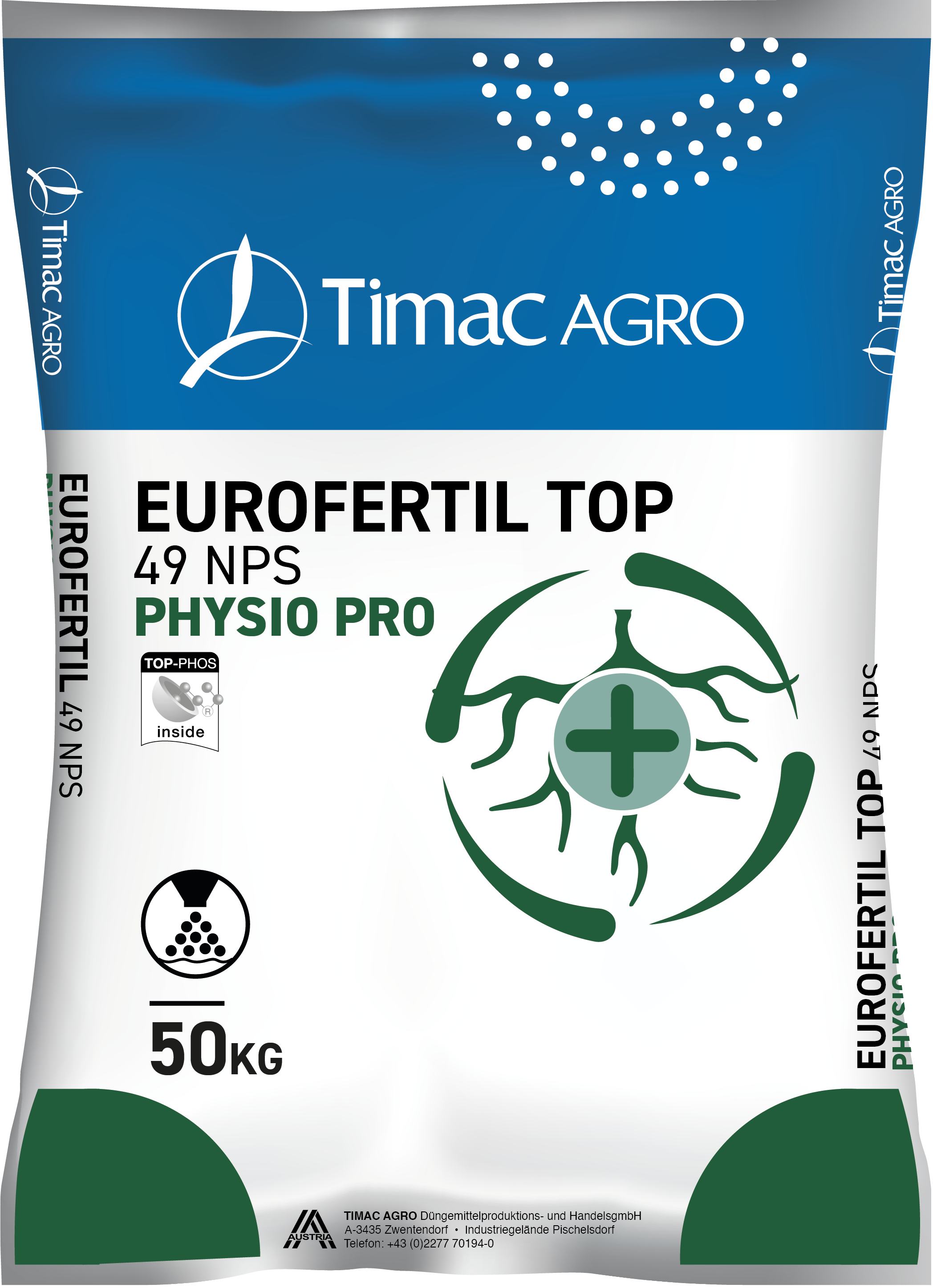 Eurofertil Top 49 NPS to granulowany nawóz zawierający Physio+, Mezocalc oraz azot, fosfor, siarkę i bor. Top-Phos to rewolucyjna, nowa, opatentowana forma fosforu, w której fosforan jednowapniowy połączony jest mostkiem wapniowym z cząsteczką organiczną. Top-Phos znacznie ogranicza problem uwsteczniania się fosforu zawartego w nawozie, zarówno w warunkach gleb kwaśnych, jak i zasadowych. W rezultacie zwiększa się efektywność nawożenia i odżywiania roślin tym składnikiem. Physio+ to aminopuryna pozyskiwana z alg morskich, która jest naturalną substancją wpływającą na bardziej intensywny wzrost systemu korzeniowego oraz pobieranie wapnia, fosforu i potasu. Zwiększa wigor roślin w początkowej fazie rozwoju oraz odporność na czynniki stresowe.