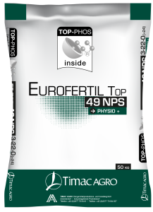 Eurofertil Top 49 NPS to granulowany nawóz zawierający Physio+, Mezocalc oraz azot, fosfor, siarkę i bor. Top-Phos to rewolucyjna, nowa, opatentowana forma fosforu, w której fosforan jednowapniowy połączony jest mostkiem wapniowym z cząsteczką organiczną. Top-Phos znacznie ogranicza problem uwsteczniania się fosforu zawartego w nawozie, zarówno w warunkach gleb kwaśnych, jak i zasadowych. W rezultacie zwiększa się efektywność nawożenia i odżywiania roślin tym składnikiem. Physio+ to aminopuryna pozyskiwana z alg morskich, która jest naturalną substancją wpływającą na bardziej intensywny wzrost systemu korzeniowego oraz pobieranie wapnia, fosforu i potasu. Zwiększa wigor roślin w początkowej fazie rozwoju oraz odporność na czynniki stresowe.