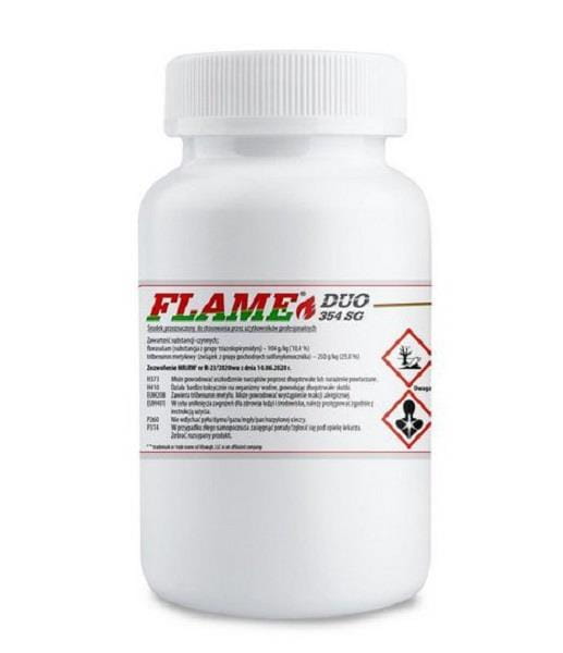 Flame Duo 354 SG dostępny jest w postaci granulatu do sporządzania zawiesiny wodnej. Produkt stosuje się wyłącznie przy użyciu opryskiwaczy polowych.