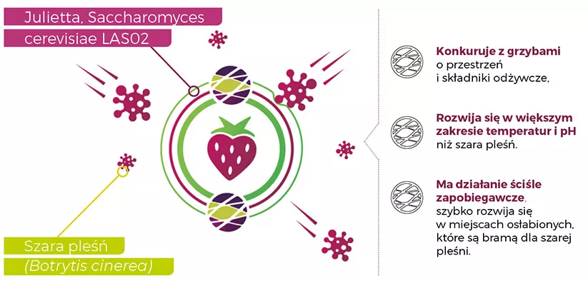 Julietta to biologiczny fungicyd działający powierzchniowo, w formie granulatu do sporządzania zawiesiny wodnej. Przeznaczony dla profesjonalnych użytkowników, środek ten skutecznie chroni rośliny przed chorobami wywoływanymi przez grzyby z rodzaju Botrytis (szara pleśń) oraz Monilinia (brunatna zgnilizna). Działa profilaktycznie niczym naturalna "szczepionka", a jego stosowanie możliwe jest aż do 1 dnia przed zbiorem – bez obaw o pozostałości w plonie.