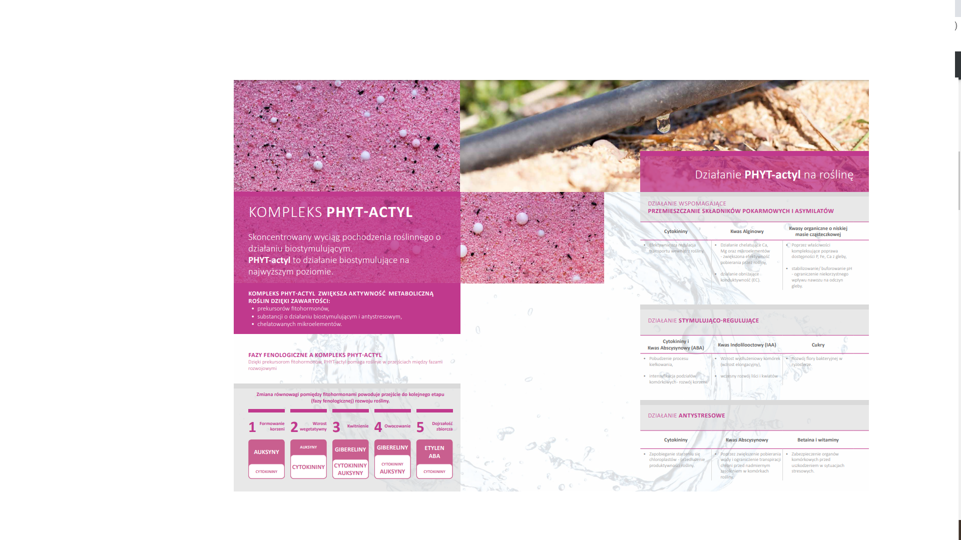 - kompleks Phyt-Actyl (prekursory fitohormonów, subastancje o działaniu biostymulującym i antystresowym, chelatowane mikroelementy)