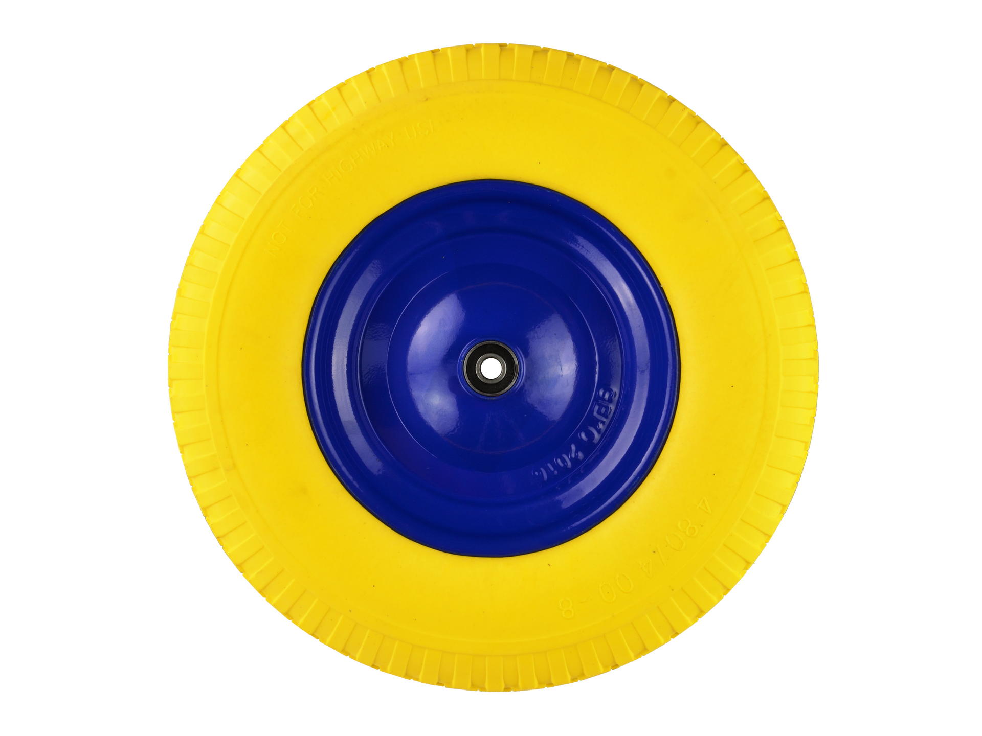Koło do taczki bezdętkowe 4.00-8. Wykonane zostało z wytrzymałego tworzywa poliuretanowego. Wzmacniana metalowa felga, malowana proszkowo zapewnia podwyższoną stabilność. Całość wykonana z wysokiej jakości materiałów.