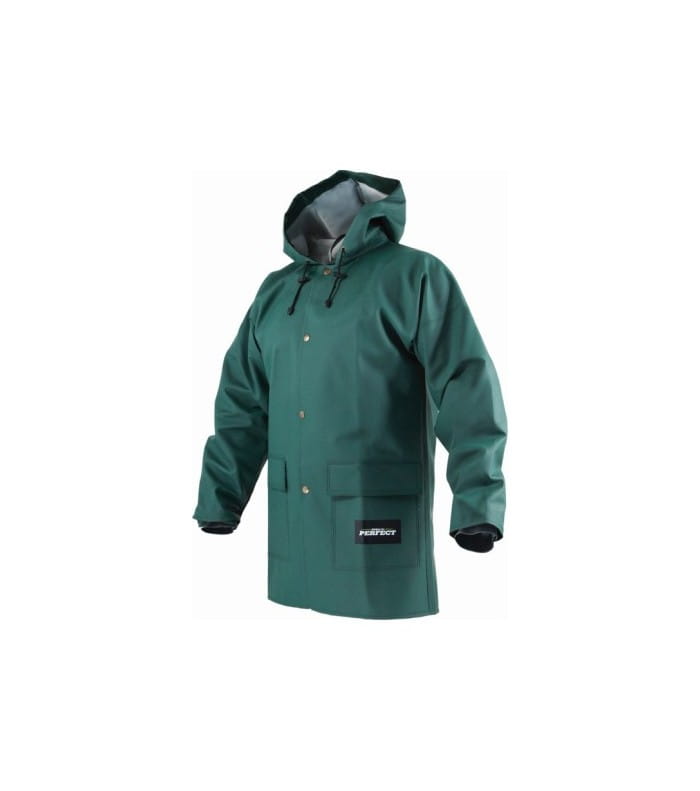 Kurtka przeciwdeszczowa z wodoodpornego tworzywa PLAVITEX o bardzo wysokiej odporności na wiatr i niską temperaturę otoczenia. Posiada właściwości termoizolacyjne, utrzymujące ciepłotę ciała. Kurtka wodoodporna zapinana jest na zatrzaski, posiada też duże kieszenie zabezpieczone patkami. Jej luźna forma nie krępuje ruchów. Do tego ma ona zintegrowany regulowany kaptur i wiatrołap w rękawie.