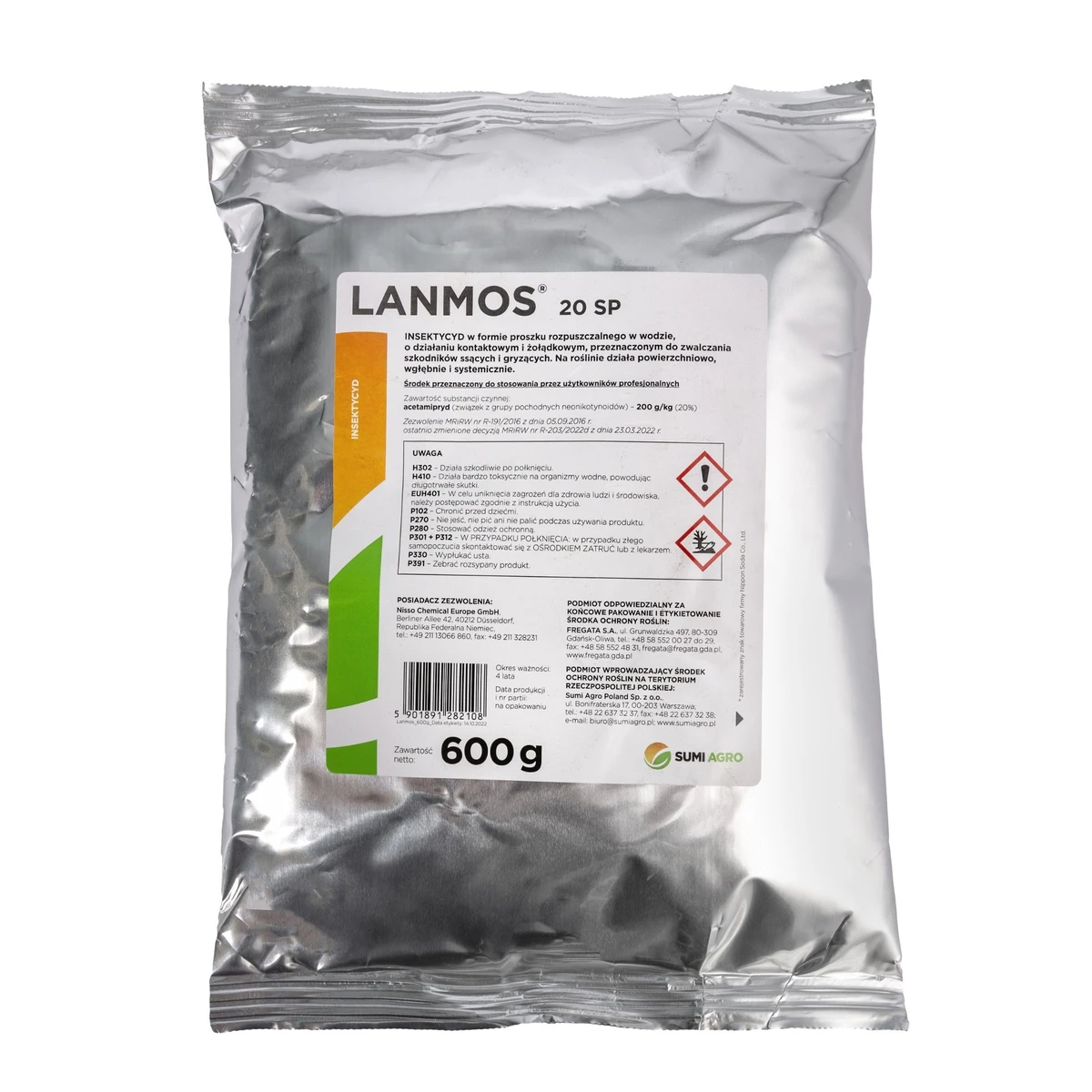 Lanmos 20 SP to insektycyd w formie proszku rozpuszczalnego w wodzie, zawierający acetamipryd – jedyną aktualnie dostępną w sprzedaży substancję czynną z grupy neonikotynoidów. Działa na szkodniki kontaktowo i żołądkowo, a na roślinie powierzchniowo, wgłębnie oraz systemicznie, zapewniając wydłużoną ochronę upraw.