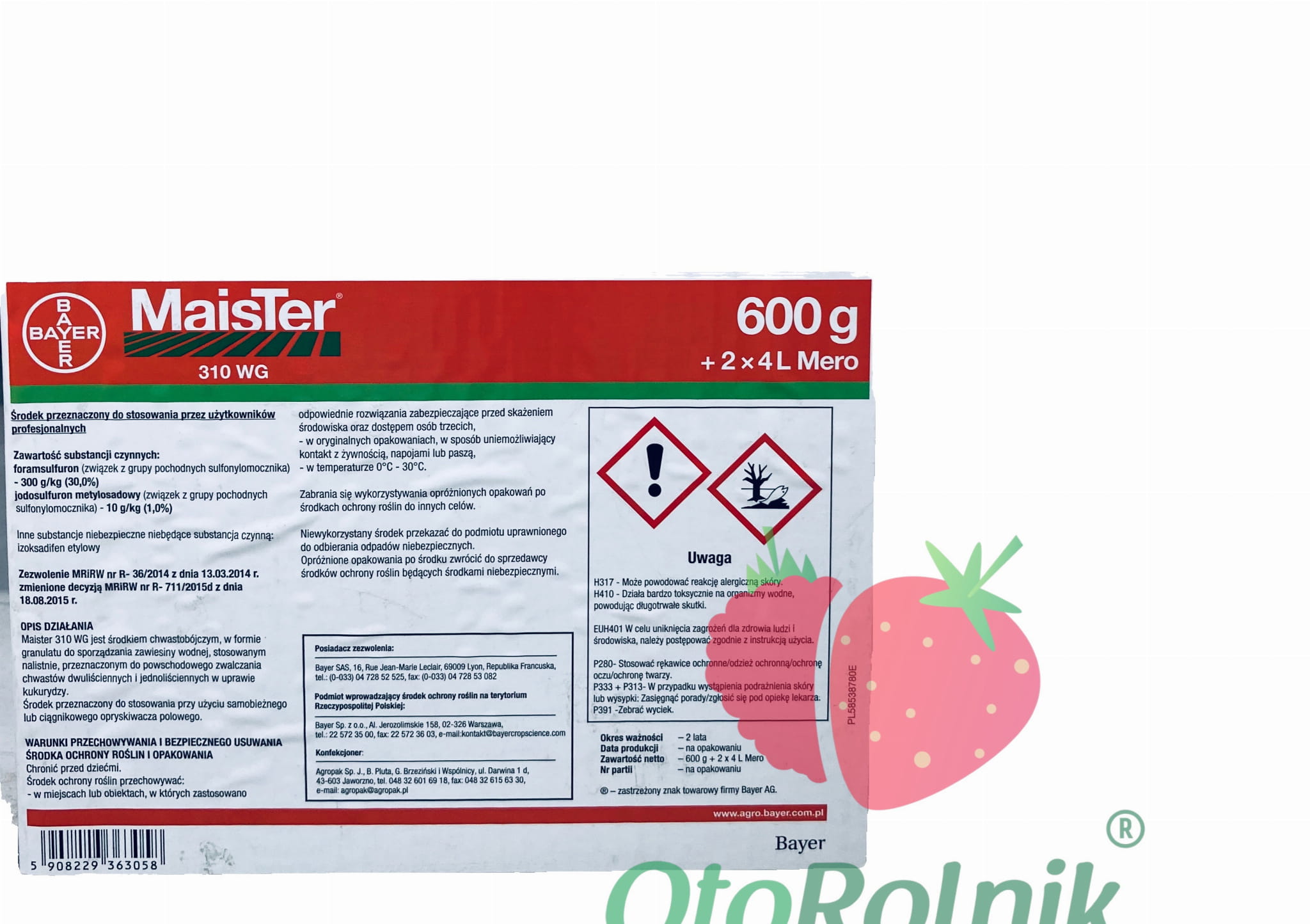 Maister 310 WG zawiera dwie substancje czynne (foramsulfuron i jodosulfuron metylosodowy), które są pobierane przez liście chwastów i przemieszczane w całej roślinie.