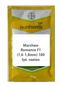 Marchew Romance to odmiana średnio wczesna, świeżo-rynkowa polecana do zbioru we wrześniu i październiku. Korzenie bardzo wyrównane, odporne na pękanie. Marchew cylindryczna, tępo zakończona, gładka i łatwa w myciu i polerowaniu. Zdrowa i silnie przytwierdzona nać gwarantuje zbiór mechaniczny. Polecana do siewu od połowy kwietnia do połowy czerwca, zbiór sierpień-początek listopada.