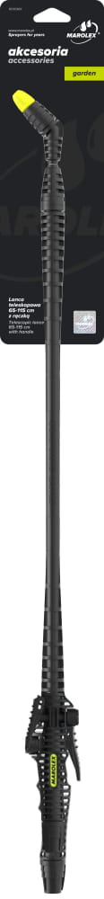 Lanca w komplecie z precyzyjnym zaworem dozującym zintegrowanym z rączką oraz umieszczonym w niej filtrem i przyłączem do węża. Lanca pasuje do wszystkich modeli opryskiwaczy kompresyjnych i plecakowych Marolex. Możliwe jest także użycie lancy kpl. do większości opryskiwaczy innych producentów - zastosowano standardowy gwint 3/8". Lanca posiada regulację długości od 65 do 115 cm połączoną z systemem APS zapobiegającym brudzeniu się mechanizmu teleskopu. Dysza z płynną regulacją kąta strumienia oraz zewnętrzny materiał lancy będący połączeniem lekkiego plastiku i wyjątkowo wytrzymałego włókna szklanego tworzą z lancy teleskopowej najbardziej zaawansowaną technicznie lancę nas rynku.