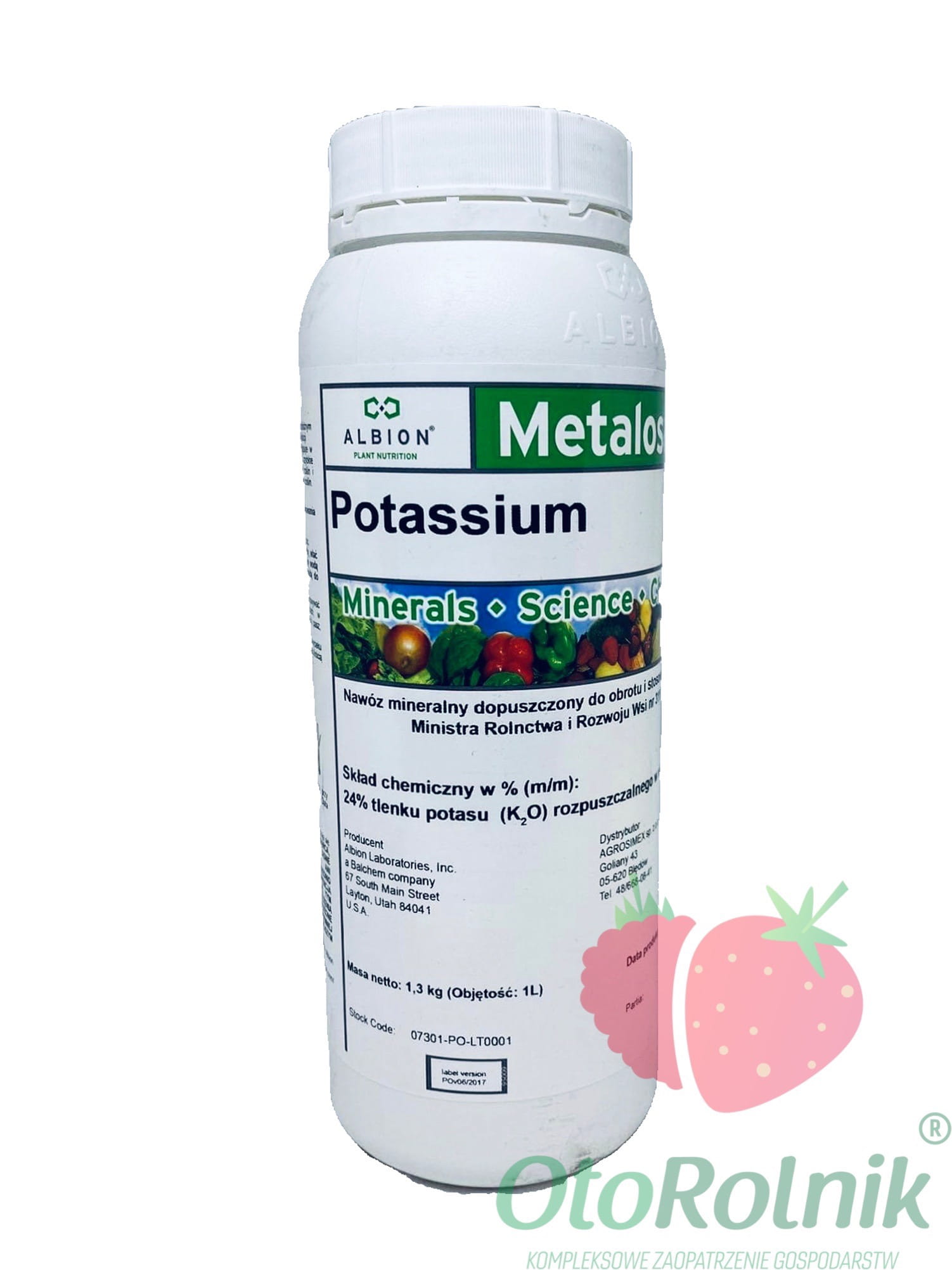 Metalosate Potassium jest to płynny, dolistny nawóz potasowy przeznaczony do likwidacji niedoborów potasu. Potas w nawozie występuje w postaci bardzo małych molekuł skompleksowanych unikalnym zestawem naturalnych aminokwasów, co zapewnia szybkie pobieranie nawozu przez liście nawożonych roślin i pełną kompatybilność nawozu z metabolizmem roślin.