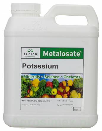 Metalosate Potassium jest to płynny, dolistny nawóz potasowy przeznaczony do likwidacji niedoborów potasu. Potas w nawozie występuje w postaci bardzo małych molekuł skompleksowanych unikalnym zestawem naturalnych aminokwasów, co zapewnia szybkie pobieranie nawozu przez liście nawożonych roślin i pełną kompatybilność nawozu z metabolizmem roślin.