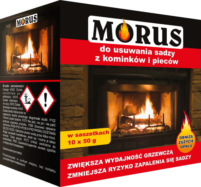 Preparat do usuwania powstałej w paleniskach i przewodach kominowych sadzy. Zawarte w nim sole mineralne pod wpływem wysokiej temperatury ulegają rozkładowi na substancje o właściwościach katalitycznych, które znacznie przyspieszają proces spalania sadzy i osadów smołowych. Może być stosowany we wszystkich kominkach i piecach na paliwo stałe (np. drewno, ekogroszek).