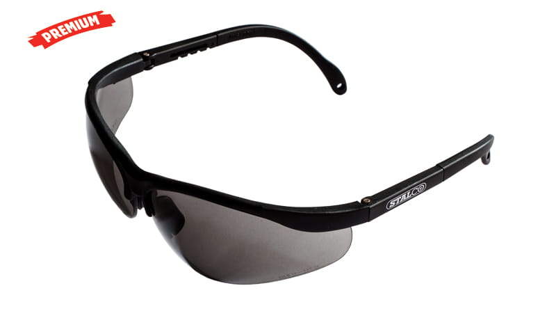 Przyciemniane soczewki z tworzywa sztucznego zapewniają ochronę przed szybkoporuszającymi się cząsteczkami o niskiej energii.