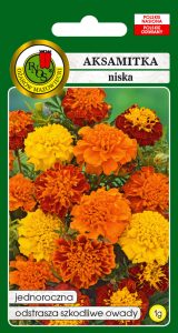 Roślina jednoroczna o silnie rozgałęzionych łodygach i pierzastodzielnych, piłkowanych liściach. Koszyczki kwiatowe pełne, o średnicy 4-5 cm, osadzone pojedynczo na szypułkach. Rośliny wydzielają ostry, charakterystyczny zapach. Korzenie wydzielają substancje blokujące rozwój nicieni. Ta cecha sprawia, że aksamitkę uprawia się jako przedplon w uprawie niektórych gatunków roślin np.truskawek, oraz równorzędnie np. z pomidorami.
