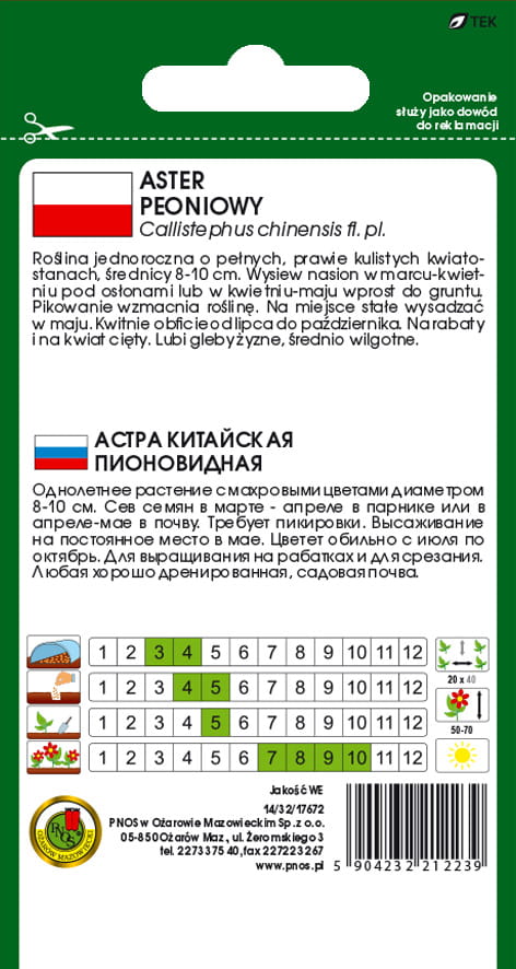 ASTER PEONIOWY BIAŁORÓŻOWY