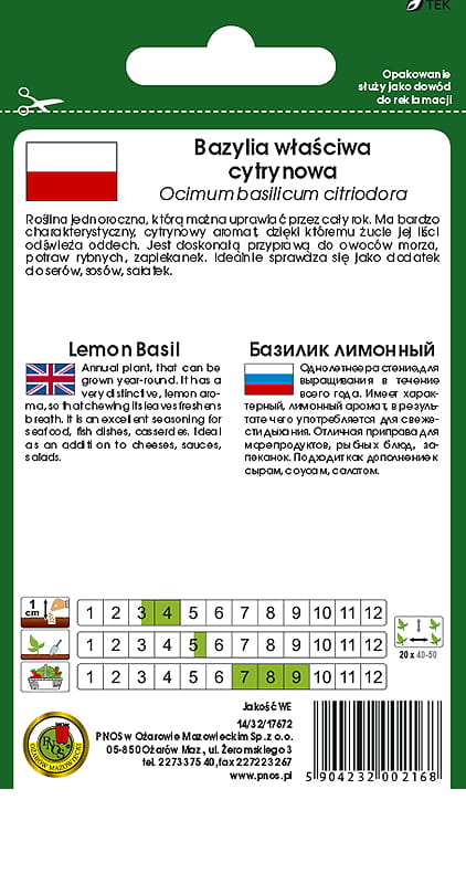 Roślina jednoroczna, którą można uprawiać przez cały rok. BAZYLIA WŁAŚCIWA CYTRYNOWA ma bardzo charakterystyczny, cytrynowy aromat, dzięki któremu żucie jej liści odświeża oddech. Jest doskonałą przyprawą do owoców morza, potraw rybnych, zapiekanek. Idealnie sprawdza się jako dodatek do serów, sosów, sałatek.