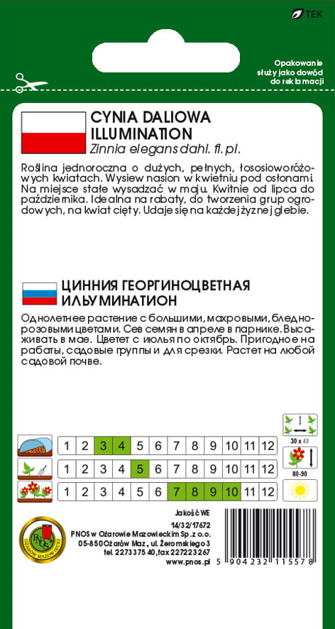 Roślina jednoroczna o dużych, pełnych, różowych kwiatach typu daliowego. Średnica kwiatu 10-12cm. Doskonale nadaje się do tworzenia grup ogrodowych oraz na rabaty. Toleruje każdą żyzną glebę ogrodową. Przepięknie prezentuje się także w wazonie jako kwiat cięty. Nasiona wysiewamy w kwietniu pod osłony. Kwitnie od lipca do października, po wysadzeniu w maju na miejsce stałe.