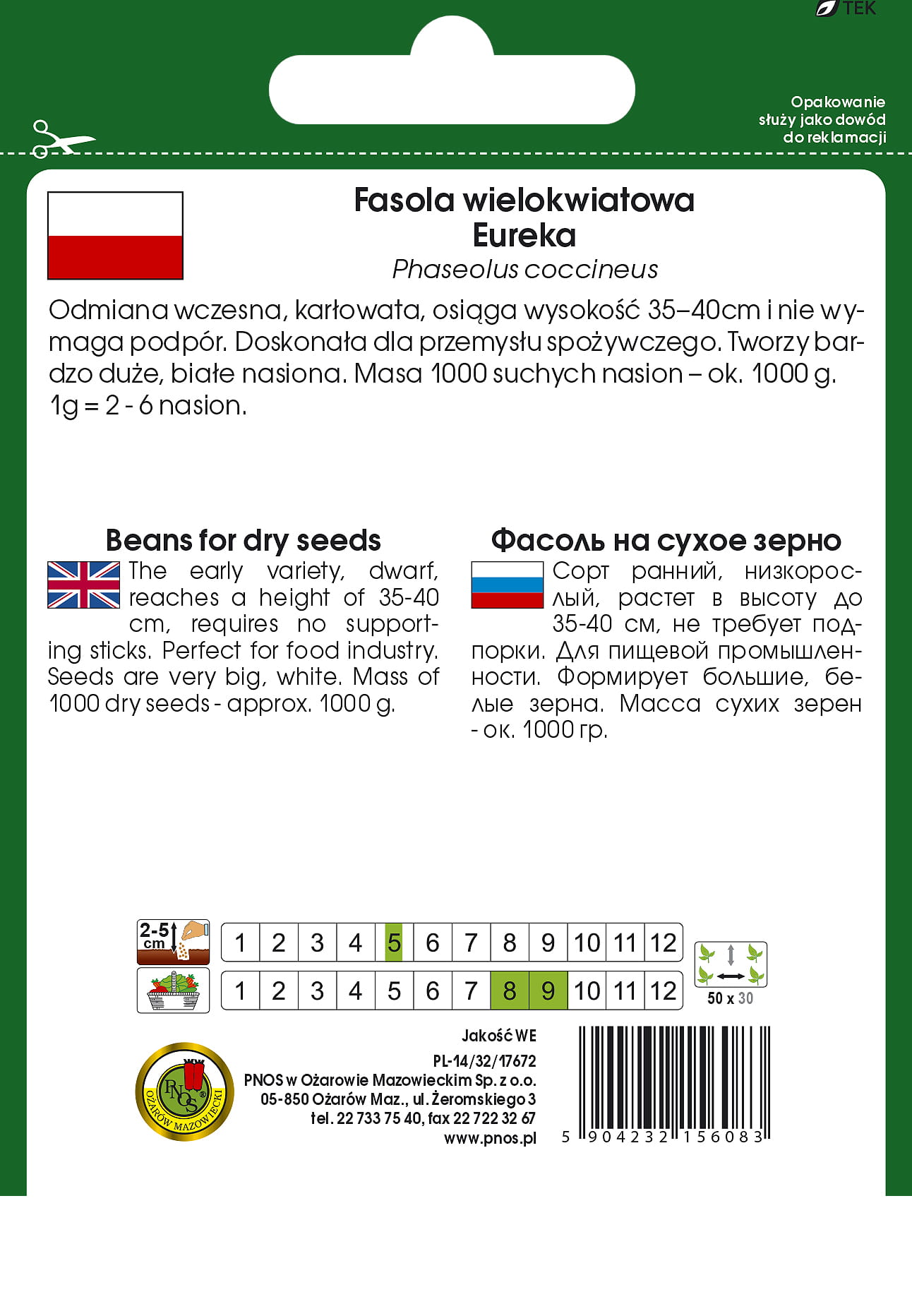 PNOS Fasola na suche ziarno Eureka 50g