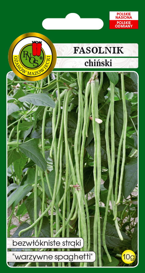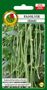Fasolnik chiński - Wspięga chińska to pnącze osiągające około 3m wysokości, podobne w smaku do fasolki szparagowej. Wymaga ciepłego, słonecznego i zacisznego stanowiska. Owoce fasolnika mają kształt cienkich strąków, które osiągają długość od 30cm do 100cm. Pierwszy zbiór strąków około 60-70 dni od wysiewu. Zbiory należy wykonywać sukcesywnie. Owocuje do pierwszych przymrozków. Strąki fasolnika można spożywać w różnych formach - na surowo, gotowane, smażone, suszone, marynowane. Doskonałe do mrożenia. Fasolnik jest bardzo smaczny.