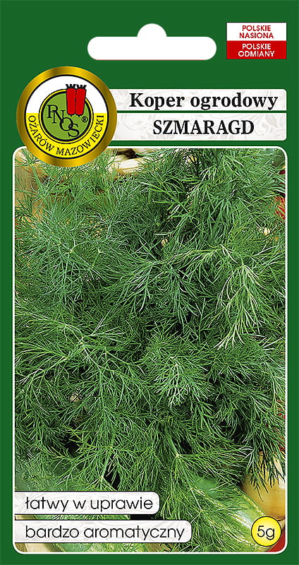 Koper Szmaragd to odmiana średnio późna, od siewu do zbioru na zielono mija około 45-50 dni. Dużym atutem tej odmiany jest późne wybijanie w pędy kwiatostanowe. Odmiana o półwzniesionym pokroju, wyróżnia się bardzo dużym plonem zielonej masy. Tworzy niewysokie, mocno ulistnione rośliny, poryte niewielkim woskowym nalotem. Osiąga wysokość 30-35cm w fazie zbioru, w okresie rozkwitu około 75cm.