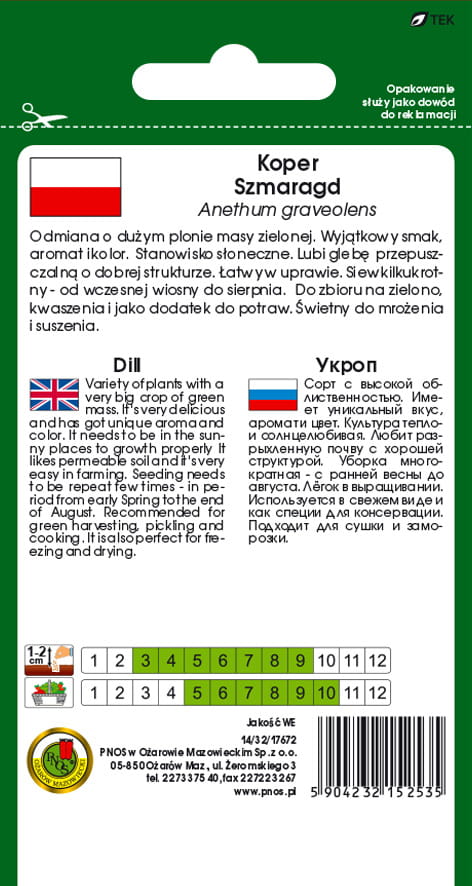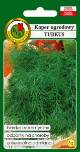 Koper ogrodowy Turkus to najbardziej plenna, wczesna odmiana. Od jego pierwszych wschodów do czasu, gdy roślina zacznie wybijać w pędy kwiatostanowe, mija zaledwie od 23 do 25 dni. Charakteryzuje się mocno wzniesionym pokrojem i okazałymi rozmiarami (podczas kwitnienia osiąga do 1,5m wysokości). Dość sztywne łodygi obficie pokrywają raczej niewielkie liście o ciemnozielonej barwie z widocznym nalotem woskowym. Turkus jest niezwykle aromatyczny, gdyż zawiera dużą ilość olejków eterycznych.