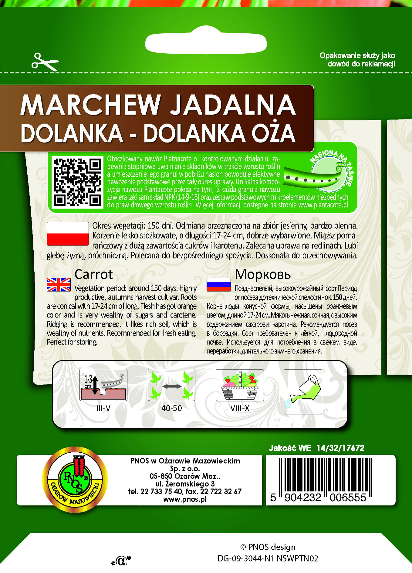 Opakowanie: ok. 300 nasion w 6m taśmy z nawozem Platnacote