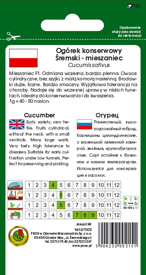 Odmiana wczesna, bardzo plenna, o dużej tolerancji wobec chorób. Polecana do uprawy na wczesny zbiór w niskich, nieogrzewanych tunelach. Owoce cylindryczne, bez szyjki, o nasadzie lekko zaokrąglonej, z małą komorą nasienną. Brodawki duże, liczne. Polecany do konserwowania i do kwaszenia. Odmiana bardzo popularna na rynku. Przeznaczona do konserwowania i kwaszenia.