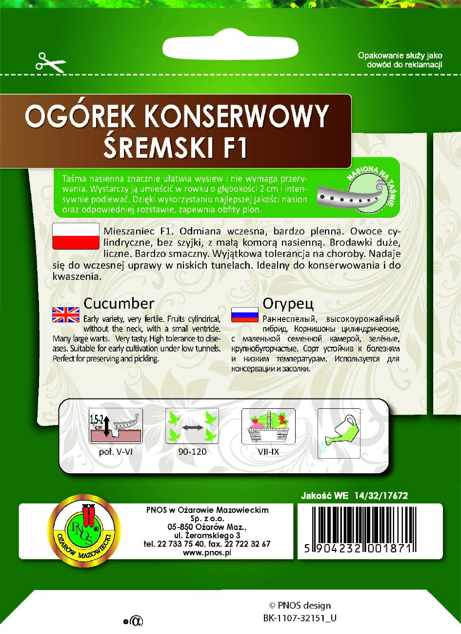 PNOS Ogórek gruntowy Śremski F1 6m nasiona na taśmie