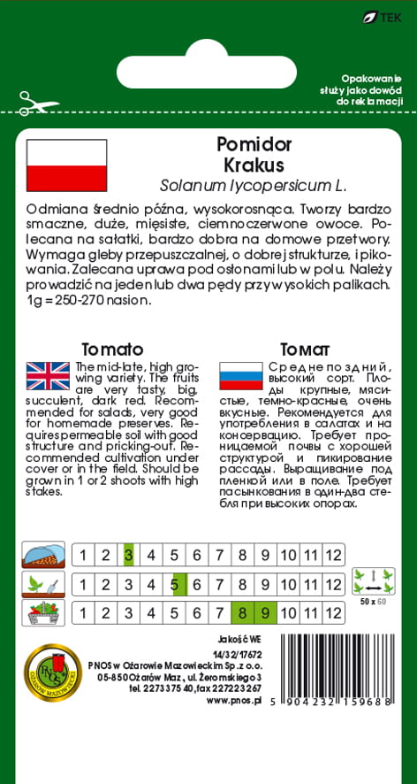 Termin wysiewu: 2 dekada III-1 dekada IV (rozsada)