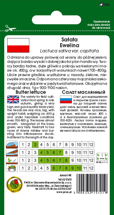 Norma wysiewu: 0,3-0,4 kg/ha (rozsada)