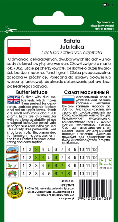 Sałata masowa. Odmiana o dekoracyjnych, dwubarwnych liściach – u nasady zielonych, wyżej czerwonych. Liście pęcherzykowate, delikatne o dużej trwałości konsumpcyjnej, bardzo smaczne ze względu na połączenie cech sałaty kruchej i masłowej. Główki zwięzłe o masie ok. 700g. Preferuje glebę przepuszczalna i bogatą w próchnicę. Odmiana polecana do uprawy polowej, a także wczesnej tunelowej.
