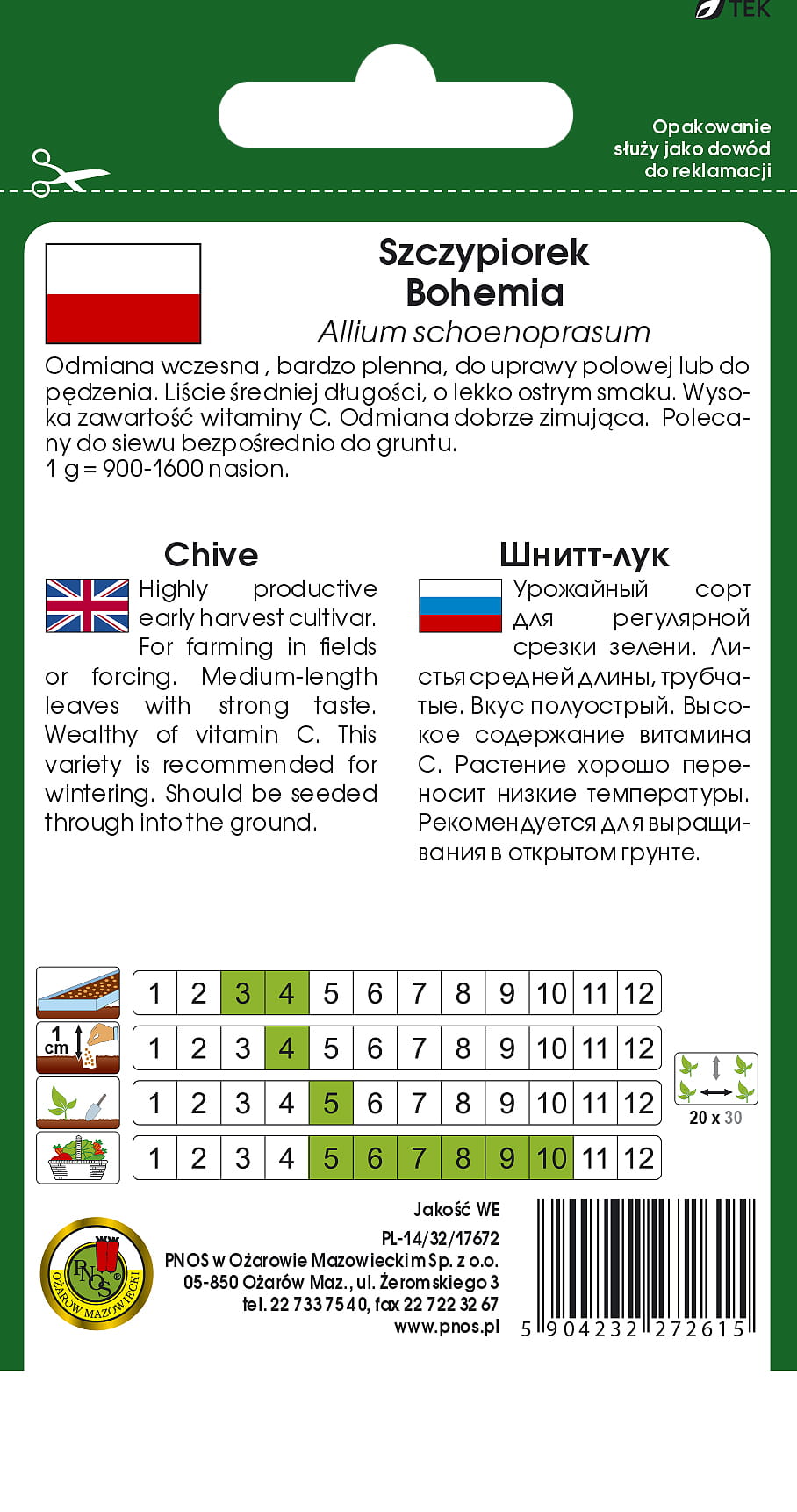 Jest rośliną wieloletnią, która dobrze zimuje w gruncie bez przykryci, jest też plenny. Szczypior jest średniej grubości i ma intensywnie zieloną barwę, ma również wysoką zawartość witaminy C. Bardzo szybko osiąga wielkość konsumpcyjną. Uprawia się go z siewu bezpośrednio do gruntu - wysiewanie w kwietniu lub z podziału kępek i rozsady - wysiewanie w marcu-kwietniu na rozsadniku. Na stałe miejsce rozsadę sadzi się w maju, w rozstawie 30x20cm, po 5-8 roślin razem.