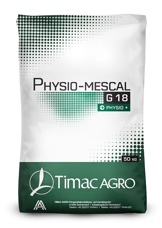 - Physio-Mescal G18 zawiera fosfor w formie fosforytu miękkiego, dzięki czemu jego uwalnianie dostosowane jest do potrzeb rośliny przez cały okres wegetacji.