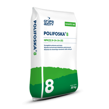 Polifoska 8 NPK(S) 8-24-24-(9) to nawóz o równomiernych jasnoszarych do ciemnoszarych lub jasnoróżowych granulach, klasa ziarnowa 2‑5 mm, co najmniej 92%. Granule powlekane, nie zbrylające się trwale. Gęstość nasypowa: 0,9‑1,0 kg/dm3. Nawóz ten można stosować pod wszystkie rośliny uprawne: zboża ozime i jare, przemysłowe i okopowe, na użytkach zielonych oraz w uprawie warzyw i sadownictwie. Polifoskę 8 NPK(S) 8-24-24-(9) zaleca się stosować na gleby o zbliżonej zasobności w fosfor i potas, w warunkach prawidłowego nawożenia organicznego oraz szczególnie pod zboża, gdy przyoruje się słomę.  Najwyższą efektywność uzyskuje się stosując Polifoskę 8 NPK(S) 8-24-24-(9) przedsiewnie, mieszając z glebą na głębokość 10‑20 cm. Nawóz ten można stosować także wczesną wiosną, pogłównie na rośliny ozime. Uprawy wieloletnie nawozić wiosną. Polifoskę 8 NPK(S) 8-24-24-(9) można mieszać bezpośrednio przed rozsiewem z mocznikiem, saletrą amonową i z saletrzakiem, a w dowolnym czasie z solą potasową.