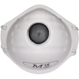 Półmaska przeciwpyłowa z zaworkiem FFP2 chroni przed aerozolami nietoksycznymi lub średnio toksycznymi w stanie stałym lub płynnym - mgła olejowa w stężeniach do 12,5 x OEL lub 10 x APF - NDS, stosowana przy obróbce drewna i metali, szlifowaniu i malowaniu, dymem metalicznym. Dzięki okrągłemu kształtowi idealnie dopasowuje się do twarzy, piankowa poduszka nie zostawia odgnieceń na nosie, metalowa klamra na zewnątrz pomaga ukształtować półmaskę do nosa, zakładana na elastyczną gumkę. Ochrona między innymi przed manganem, drobnymi cząstkami, pyłami i dymem metalicznym, ozonem, mgłą olejową. Zgodna z normą EN 149.
