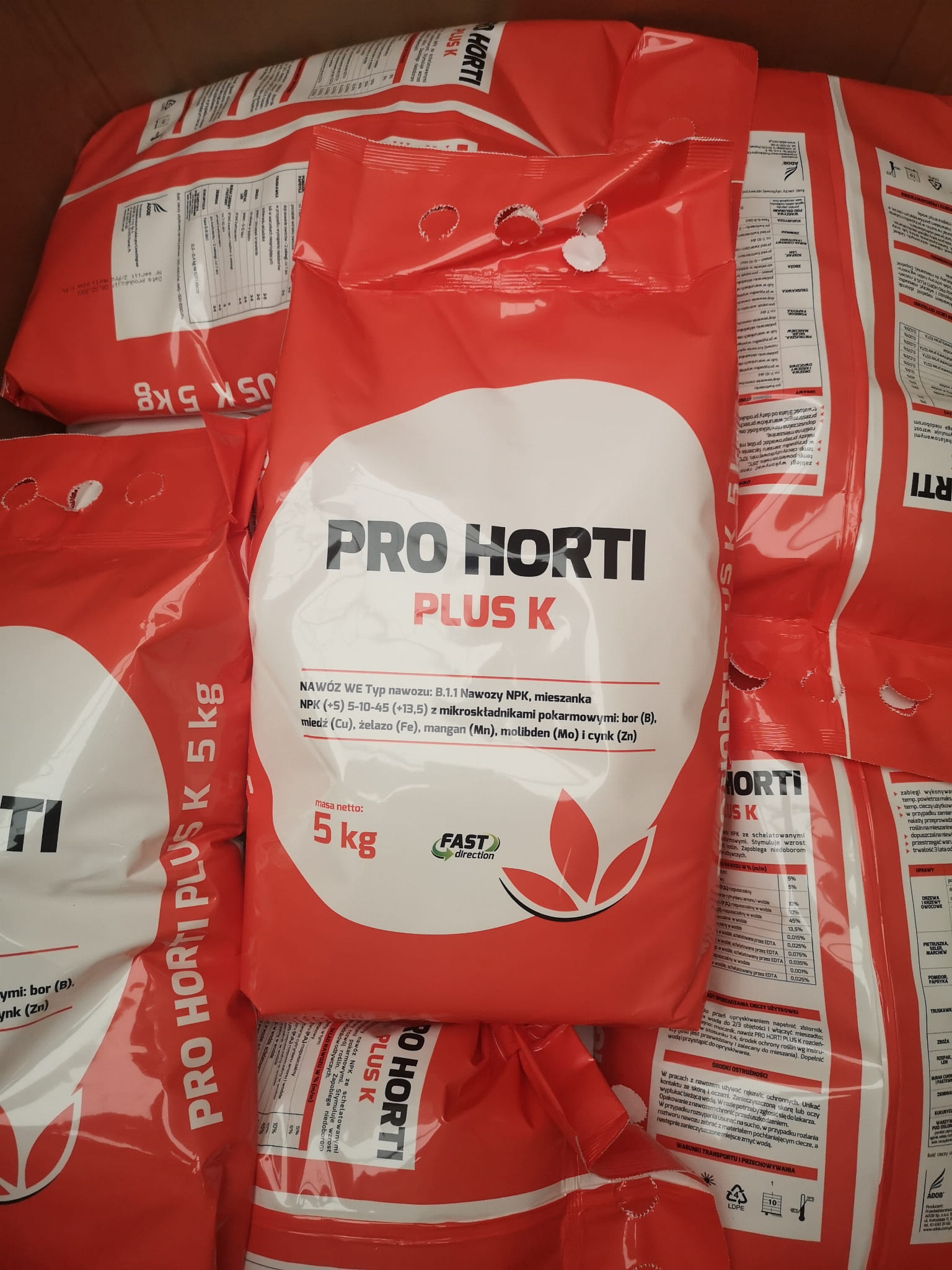 Krystaliczne nawozy Pro Horti Plus zostały wyprodukowane w innowacyjnej technologii Fast Direction, która przyspiesza pobieranie i wykorzystanie substancji pokarmowych z powierzchni liści i innych nadziemnych części roślin. Jest to bardzo istotne, ponieważ w przypadku dokarmiania owoców przyspiesza przemieszczanie się składników i poprawia efektywność nawożenia. Formuła Fast Direction ma też ogromne znaczenie wczesną wiosną, kiedy to u drzew i krzewów owocowych mamy do czynienia z niewielką powierzchnią blaszek liściowych i wykorzystanie potencjału młodej kory do przyswajania składników jest niesłychanie istotne. W tym okresie mało aktywne korzenie nie są w stanie zapewnić pobranie odpowiedniej ilości składników pokarmowych. Pro Horti Plus K stosujemy do zainicjowania dojrzewania owoców i warzyw. Kilka zabiegów wyraźnie wpływa na przyspieszenie dojrzewania oraz poprawę wybarwienia. Przy odmianach drobnoowocowych Pro Horti Plus K zastosowane w połowie okresu wegetacji pozytywnie wpływa na wielkość owoców. Pro Horti