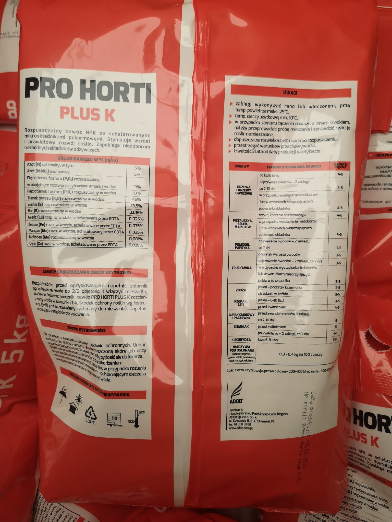 - Tlenek potasu (K2O): 45,0 %