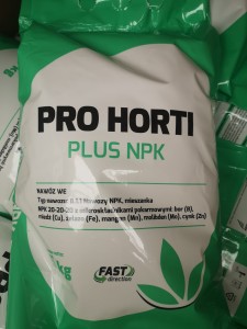 Krystaliczne nawozy Pro Horti Plus zostały wyprodukowane w innowacyjnej technologii Fast Direction, która przyspiesza pobieranie i wykorzystanie substancji pokarmowych z powierzchni liści i innych nadziemnych części roślin. Jest to bardzo istotne, ponieważ w przypadku dokarmiania owoców przyspiesza przemieszczanie się składników i poprawia efektywność nawożenia. Formuła Fast Direction ma też ogromne znaczenie wczesną wiosną, kiedy to u drzew i krzewów owocowych mamy do czynienia z niewielką powierzchnią blaszek liściowych i wykorzystanie potencjału młodej kory do przyswajania składników jest niesłychanie istotne. W tym okresie mało aktywne korzenie nie są w stanie zapewnić pobranie odpowiedniej ilości składników pokarmowych. Pro Horti Plus NPK używamy do ogólnego odżywienia roślin, stosujemy w okresach silnego wzrostu wegetatywnego kilka razy w sezonie. W uprawach sadowniczych zalecane jest dodatkowe stosowanie tuż po zbiorach w celu optymalnego odżywienia pąków i zgromadzenia niezbędnych rezerw składników dla lepszego startu roślin wiosną. Pro Horti Plus NPK z formułą FAST DIRECTION przyspieszającą pobieranie składników pokarmowych z powierzchni owoców i roślin. Wzrost wykorzystania składników pozwala na zmniejszenie dawki nawozu przy zachowaniu szybkich i widocznych efektów.