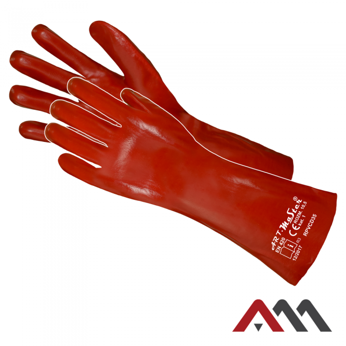 to rękawice z PCV, wzmacniane siatką bawełnianą o długości mankietu 35cm. świetnie sprawdzają się w rolnictwie i rybołówstwie dzięki odporności na wodę.